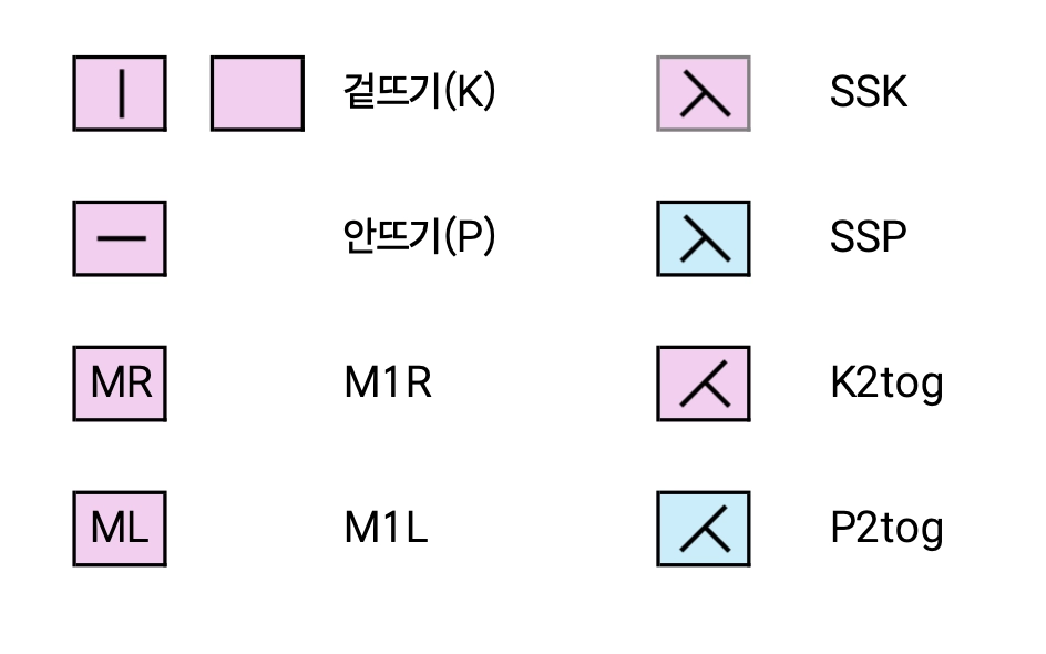 [사용 기법] K, P, m1r, m1l, ssk, ssp, k2tog, p2tog